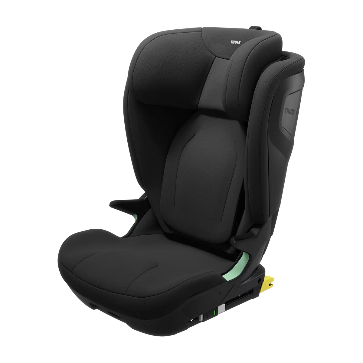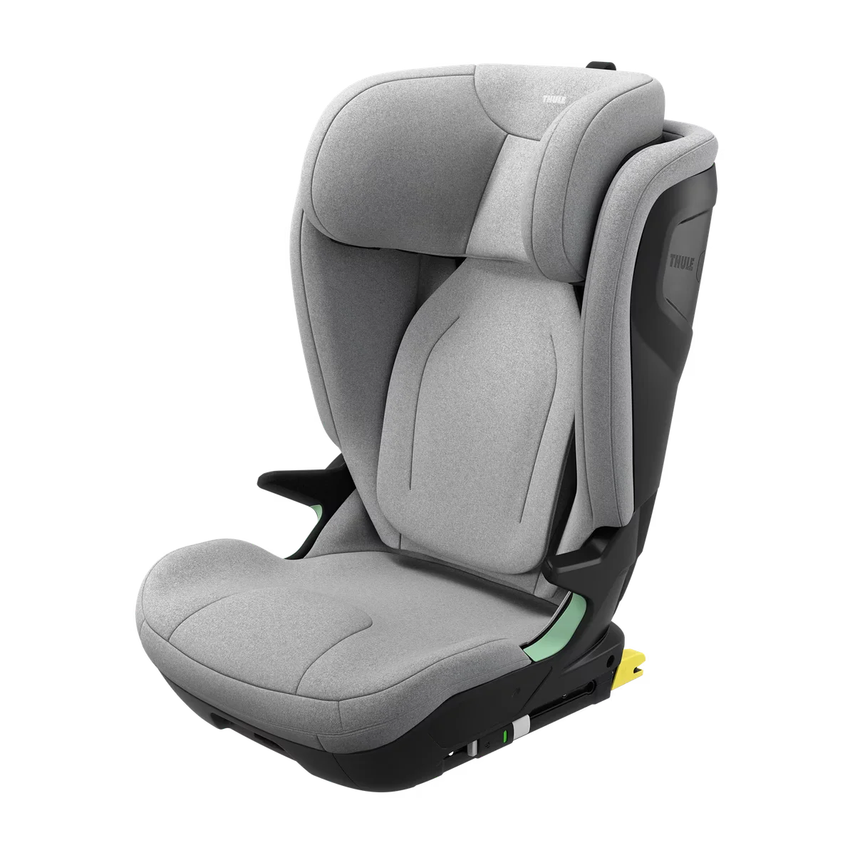 • Säkerhet: Stort huvudstöd och avancerat sidokrocksskydd (Thule Side Impact Protection). De integrerade ISOFIX-krokarna ökar stabiliteten och bältesruttningssystemet säkerställer korrekt placering av bältet på barnets höfter och axel.