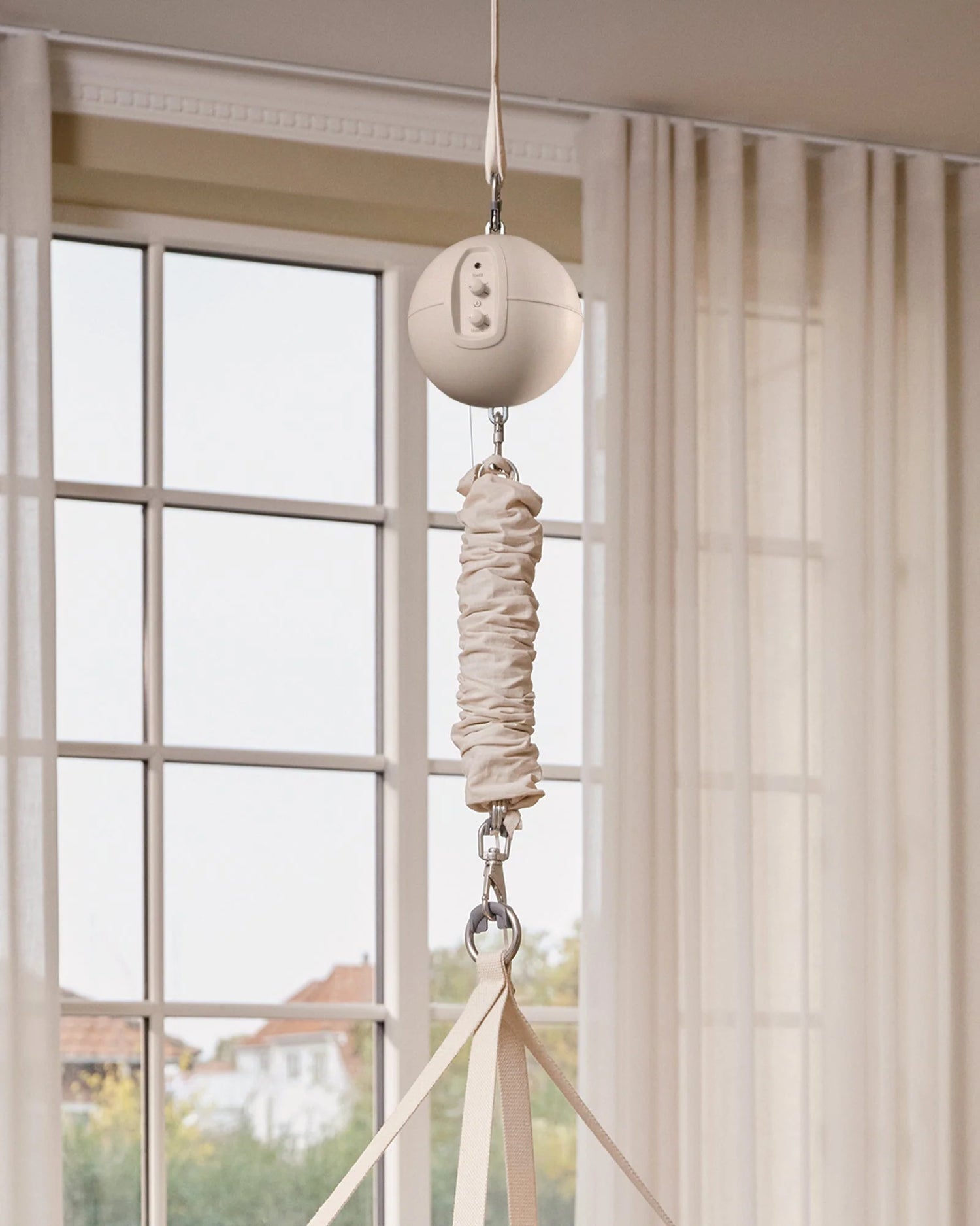 En säker takkrok i rostfritt stål och en justerbar bomullsrem med en inre nylonsäkerhetsrem är allt som behövs för att tryggt hänga upp din hängvagga eller vagga hemma.