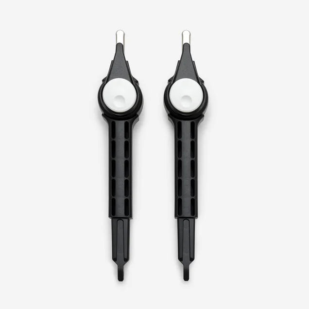 Hyr Bugaboo Butterfly anslutningsdel för komfort-ståbräda + för att fästa Bugaboo Komfort Ståbräda + på din Butterfly-barnvagn. Produkten innehåller anslutningspunkterna (sprintar) som används för att montera ståbrädan på barnvagnen.