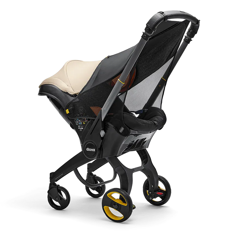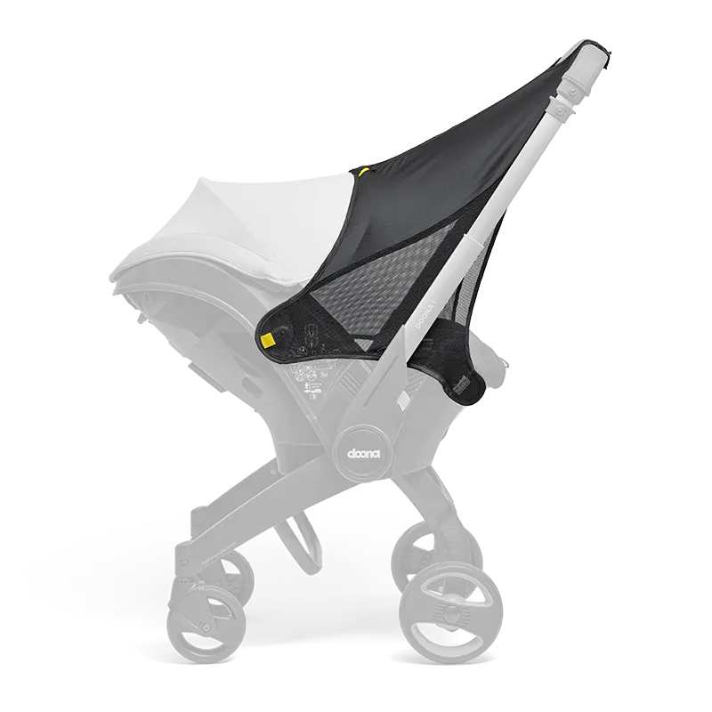 Solskyddsförlängningen är utformad för att skydda din baby från direkt solljus och erbjuder överlägset UV-skydd (UPF>50). De enkla Doona-kontakterna med snäppfäste gör det enkelt att fästa och ta bort den. När den inte används, förvara den enkelt i den medföljande kompakta bärväskan.