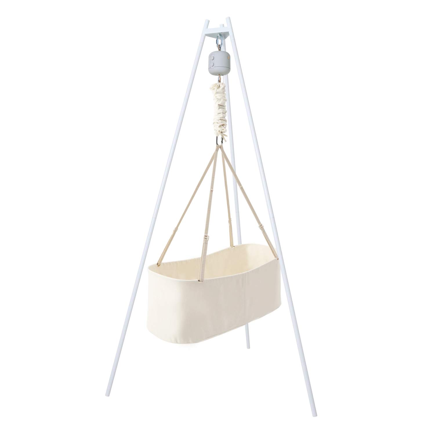 - Cradle Stand: A compact, easy-to-assemble stand that can be moved around easily. Height: 216 cm, Floor area: 125 cm. Ensure there’s enough space under the cradle when the safety strap of the spring is fully extended during assembly.
