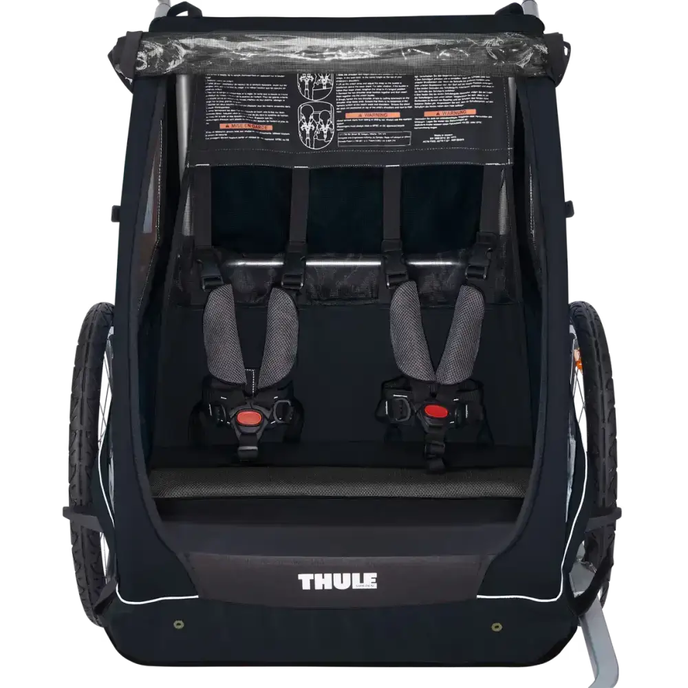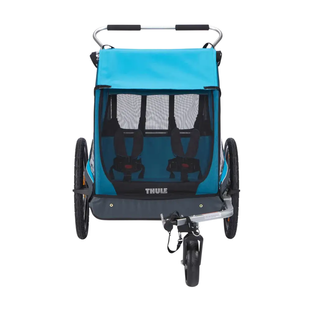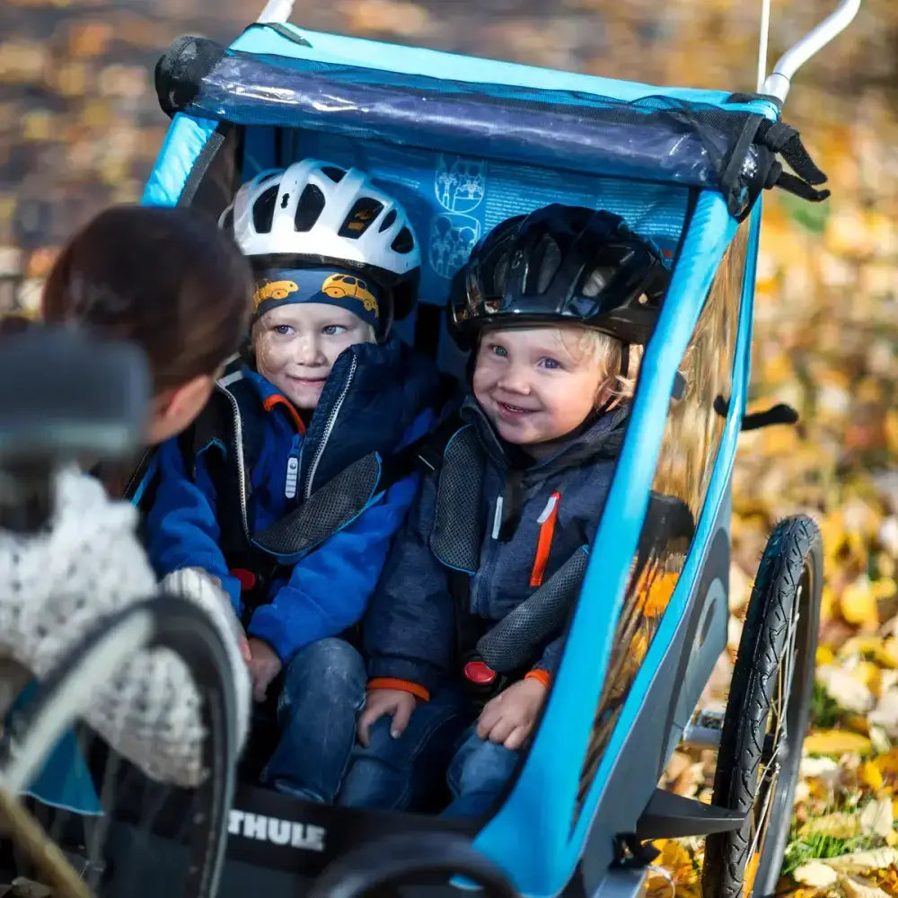 This bike trailer includes a bike and standard buggy kit, an adjustable handle and extra storage space. The simple, compact folding makes it easy to transport. The Thule Coaster XT is equipped with the patented ezHitch system for easy and quick mounting on the bike, making it ideal for both stressful commutes and relaxed excursions.