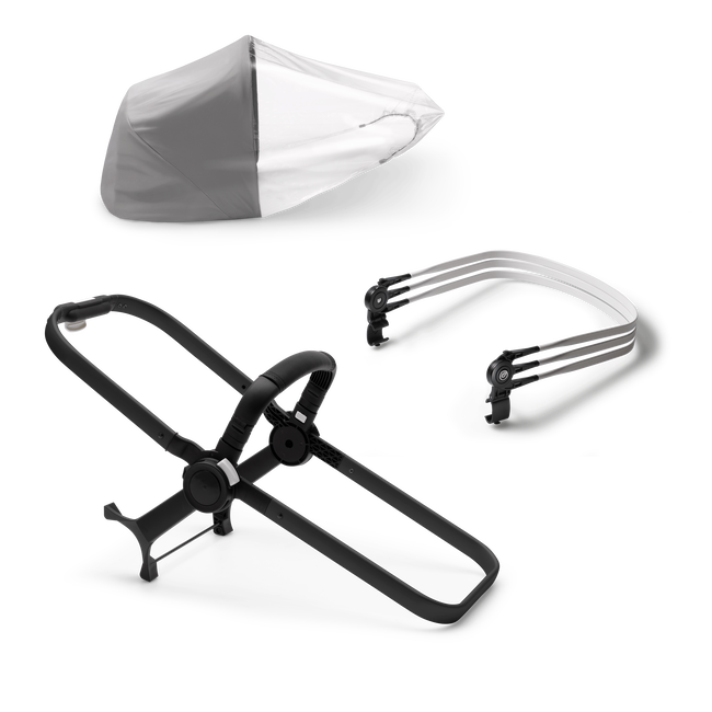 This extension set comes with the basic elements to make your Bugaboo Donkey 3 ready for more: a seating surface, set of sun visor frames, clips for the sun visor and leather-look handles, for an extra stylish touch.