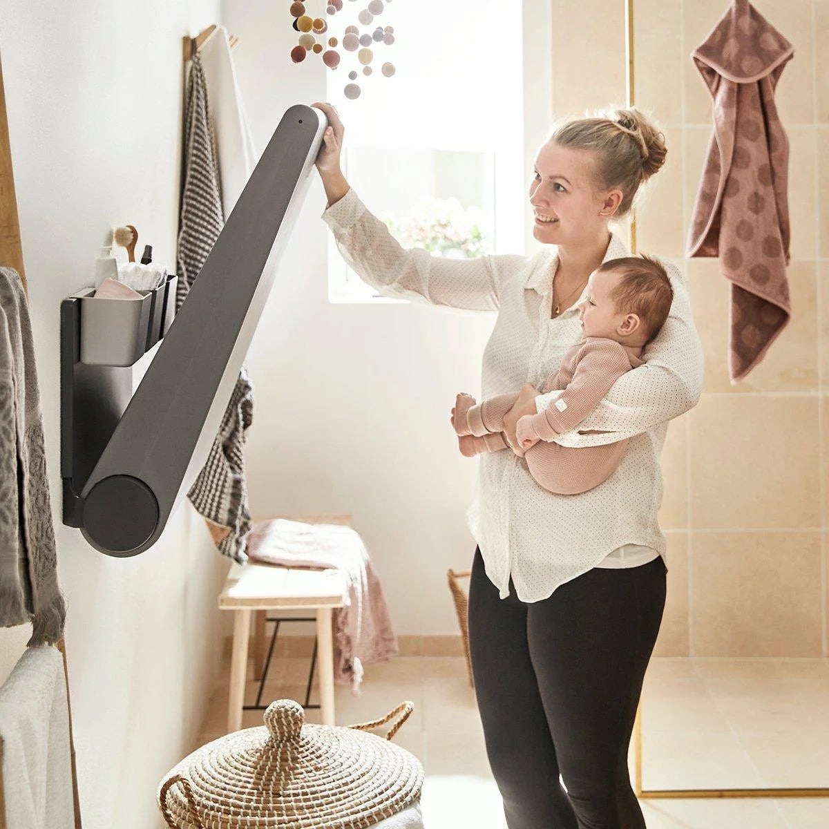 Create a cozy changing station for you and your child with the Leander Wally™ wall-mounted changing table. This contemporary, space-saving design is inspired by a droplet, making it light and levitating while adding a touch of elegance to your home. Designed to make life with a baby a little easier, this changing table offers convenience and style in one beautiful package.