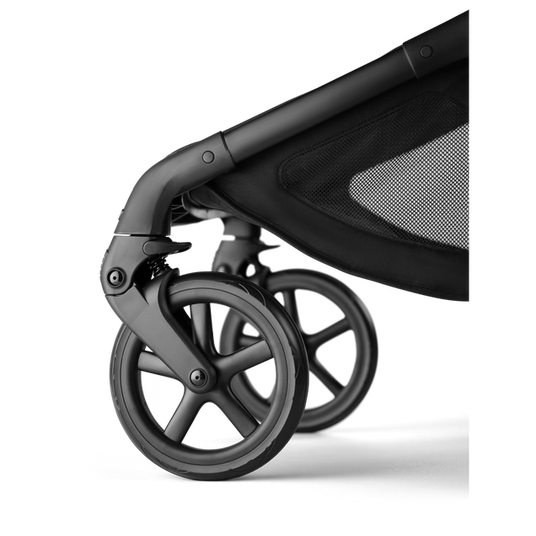 Hållbara material: Tillverkad av 100 % återvunna tyger, biobaserade material och 60 % återvunnet aluminium, vilket minskar koldioxidavtrycket med 30 % jämfört med tidigare Bugaboo Fox-modeller.